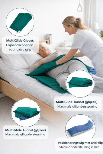 Glijlakens maken het draaien, verschuiven en positioneren in bed een stuk eenvoudiger. In veel situaties zijn accessoires bij glijlakens een waardevolle aanvulling. Ze zorgen voor extra grip, meer stabiliteit en een veiligere zorgsituatie voor zowel cliënt als zorgverlener.