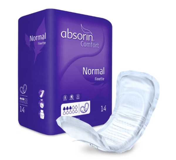 De Absorin Comfort Finette Extra is gemaakt als bescherming voor licht urineverlies bij vrouwen en wordt gedragen in het ondergoed. De Comfort Finette inlegverbanden zijn dunne en kleine inlegverbanden die vrijwel onzichtbaar zijn in het dragen van ondergoed. Het inlegverband is met een brede hechtstrip te bevestigen en sluit dankzij de anatomische vorm goed aan op het vrouwelijk lichaam.