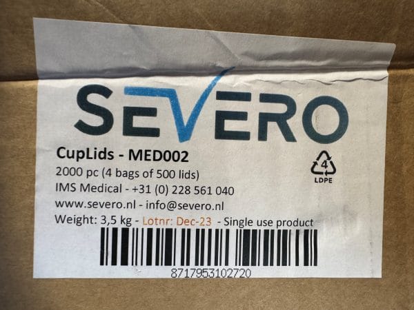 Severo deksels zijn geproduceerd van de hoogste kwaliteit ‘food grade polyproyleen’ zodat deze voldoen aan de hoogste kwaliteitsnormen voor het vermalen van medicijnen. Hierdoor is er maximale veiligheid voor zorggevers en cliënten. De cups zijn bestand tegen het vermalen van de hardste medicatie zonder enige plastic residu, ftalaten of andere contaminanten achter te laten.