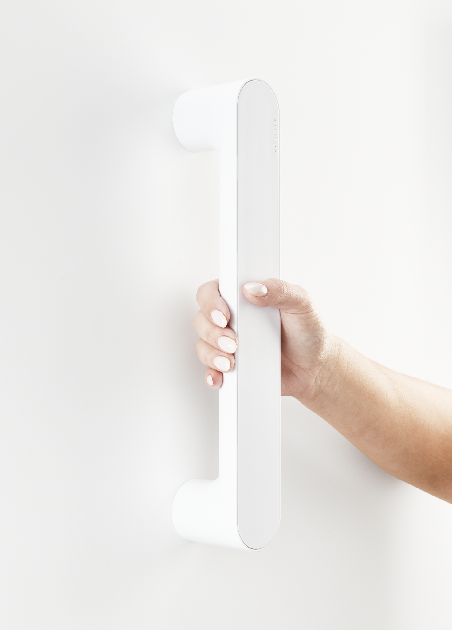 Verkrijgbaar in de kleuren Charcoal Black en Pearl White, is de Vitility ID Wandbeugel ontworpen om functionaliteit en design harmonieus te combineren.